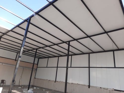 تركيب الهيكل المعدني: إنشاء هيكل معدني قوي ومتين لتثبيت ألواح ساندويتش بانل عليه.