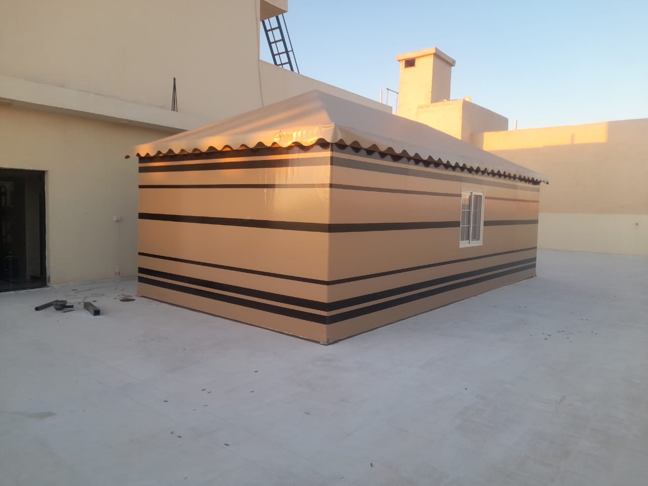 ​يبدأ العمل بتركيب الهيكل المعدني الذي يشكل الأساس القوي لبيت الشعر. يجب أن يكون الهيكل مصنوعًا من مواد قوية ومقاومة للصدأ لضمان الأمان والمتانة.